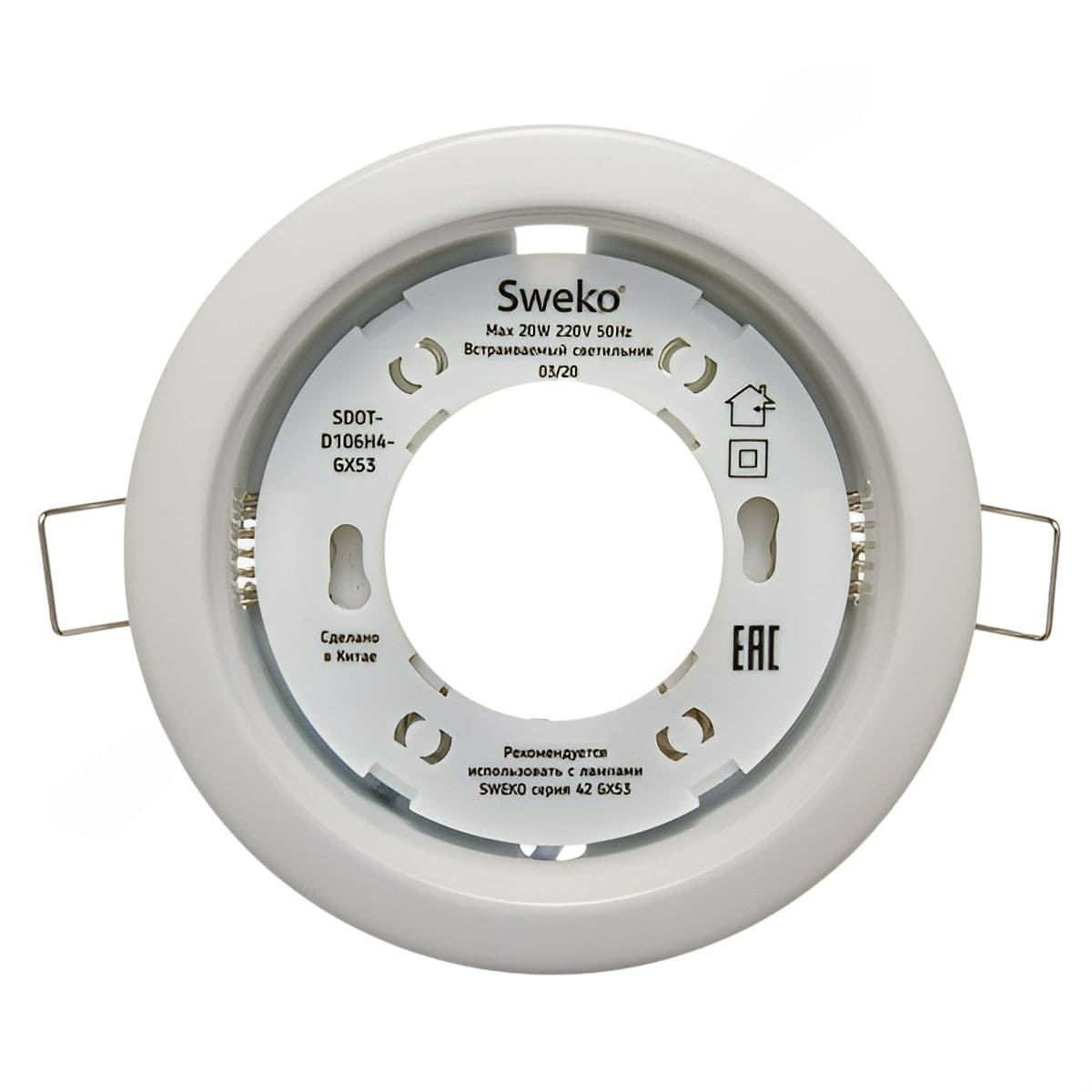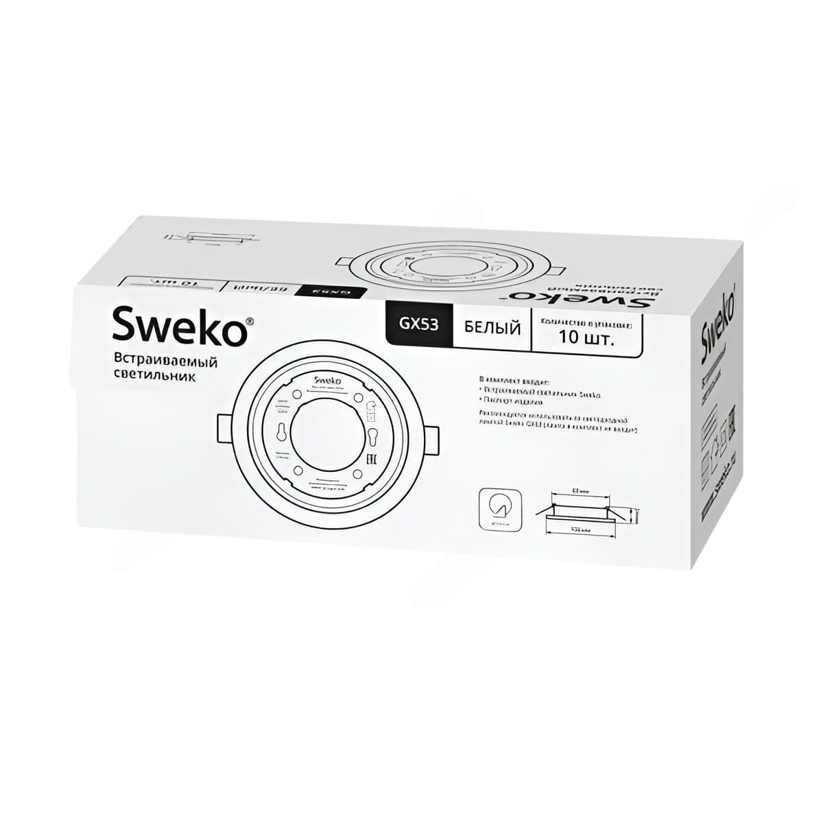 Встраиваемые светильники Sweko GX53 предназначены для общего и акцентного освещения жилых, общественных, коммерческих, офисных, административных помещений.