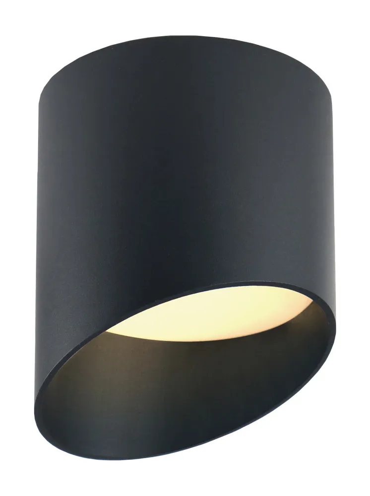 Стильный вид прибору придает оригинальное исполнение со скошенным краем и цилиндрическая форма. Точечный накладной светильник впишется в любой современный интерьер, благодаря своему лаконичному и минималистичному дизайну. Спот подходит для натяжного потолка и подвесных конструкций.