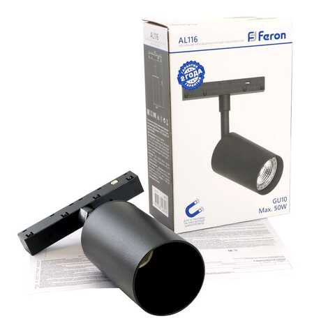 Cветильник магнитный трековый AL116 под лампу GU10 230В черный