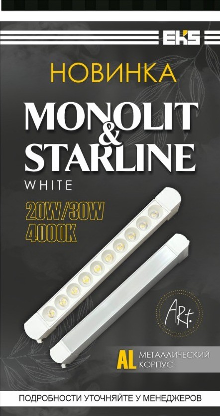 Трековый поворотный светильник ART MONOLIT в белом цвете 30 Вт, 4000K, 2700ЛМ от компании EKS для однофазных трековых систем.