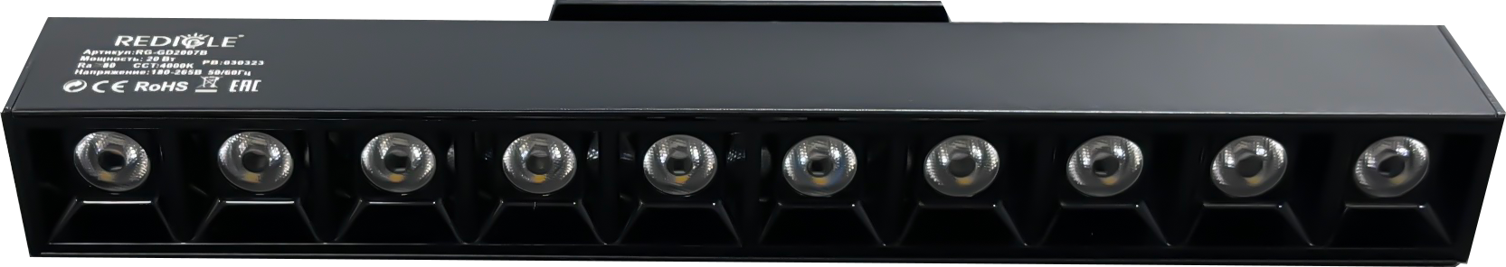 Вращаемый трековый светильник c линзой 20Вт 4000K черный RG-GD2007B Redigle 207*33.5*56