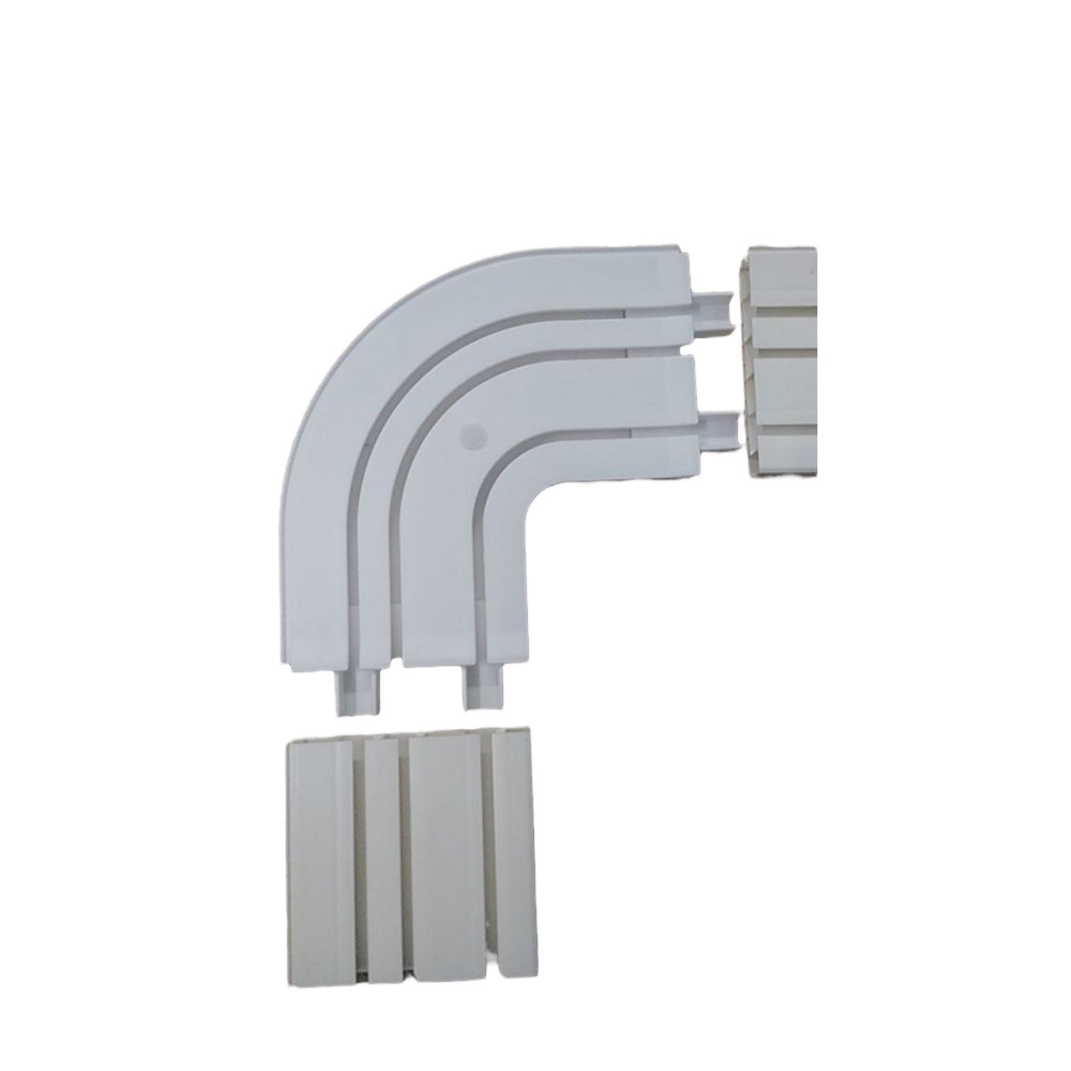 Соединитель угловой трехрядный наружный является готовым решением для карнизов с пластиковой шиной.