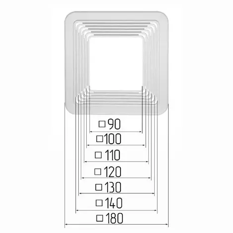 Предназначена для монтажа точечных светильников квадратного сечения, в первую очередь ориентирована на светодиодные ультратонкие светильники. Благодаря универсальности конструкции посадочный размер может варьироваться от 90 мм до 140 мм, шаг 10 мм. При подготовке платформы к установке необходимо выбрать нужный размер отверстия и с помощью ножа вырезать его по специальной канавке.