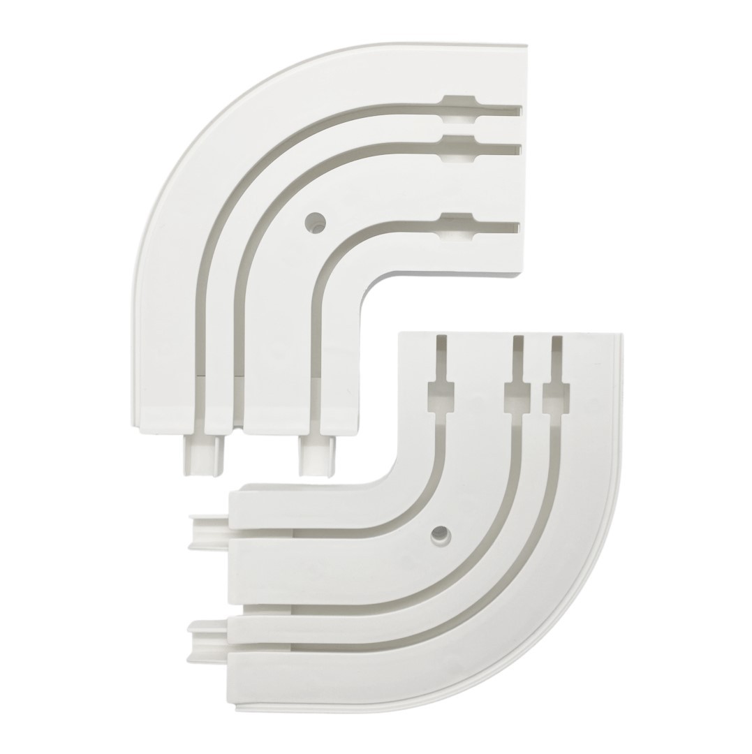 Внутренний поворотный трёхрядный соединитель – это элемент, который позволяет скрепить между собой два карниза под углом. Оптимально подойдёт для оформления эркерных зон. Изготовлен из прочного современного экологически чистого пластика.