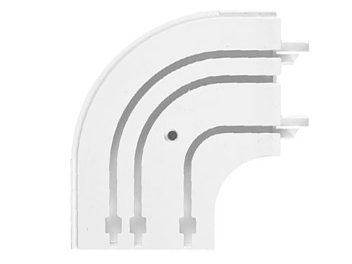 Повороты изготовлены из прочного белого пластика. Они устанавливаются по краям потолочной шины. Благодаря поворотам, шина приобретает эстетически завершенный вид.