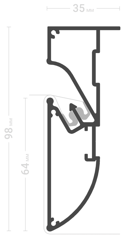 Предназначен для изготовления многоуровневых натяжных потолков без зазора между уровнями. Применение профиля ПФ6989 «Бесщелевой» позволяет значительно уменьшить трудозатраты, и как следствие повышает производительность и эффективность выполняемых работ.