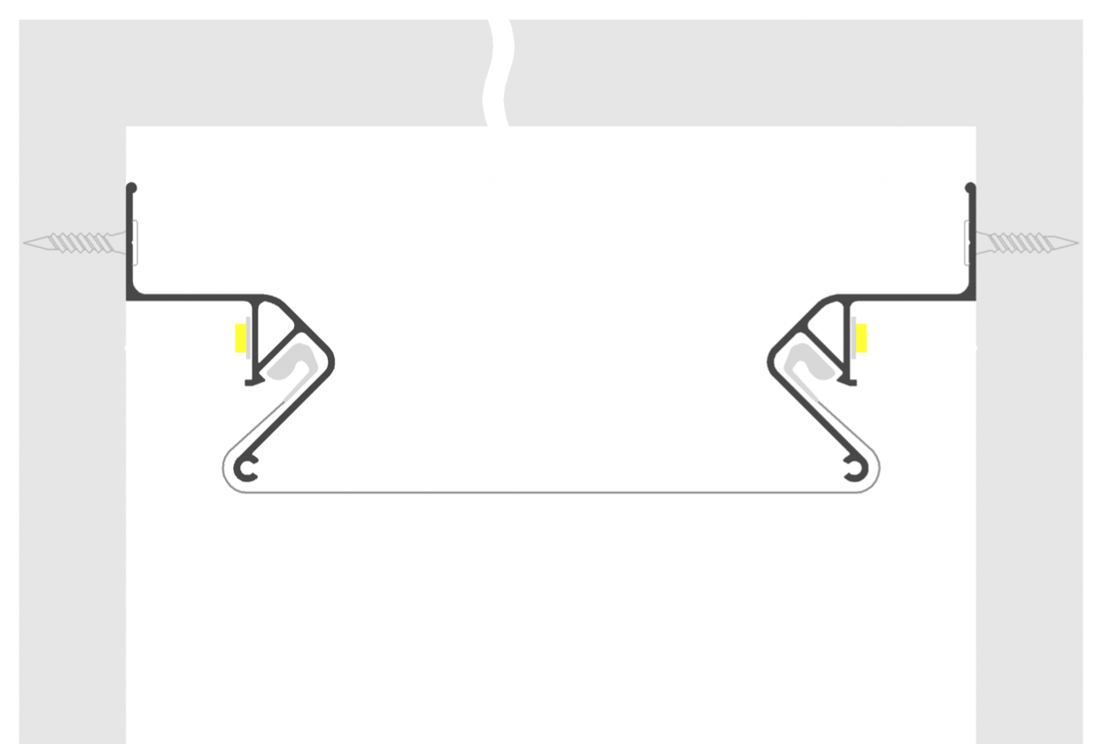 Профиль ПФ-2429 Парящий применяется для монтажа по технологии «парящий потолок». Данный профиль удобен в монтаже, креплении на него подсветки LED и натяжного полотна. Профиль предусматривает возможность создания криволинейного участка.