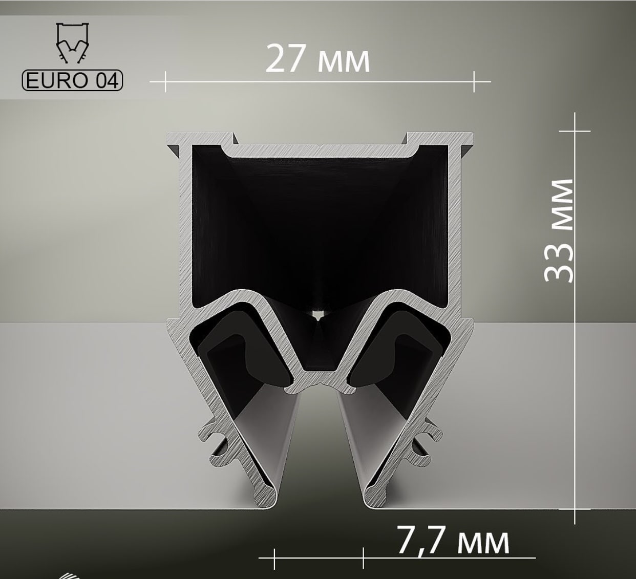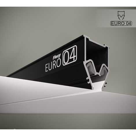 Разделительный профиль Flexy EURO 04 с теневым зазором для натяжных потолков с гарпунной системой крепления полотна. Используется для наклонных натяжных потолков на мансардах либо для разделения поверхности полотна на несколько сегментов без использования разделительной вставки.