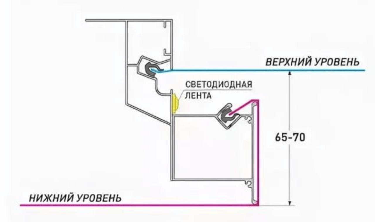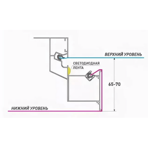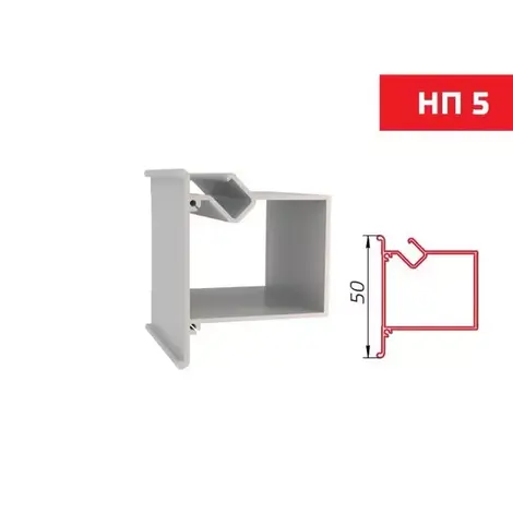Конструкционный нишевой профиль для ступенчатого перехода с подсветкой. Обеспечивает ступенчатый переход, высотой 50 мм. Предназначен для изготовления каркасов натяжных потолков с межуровневой нишевой подсветкой.