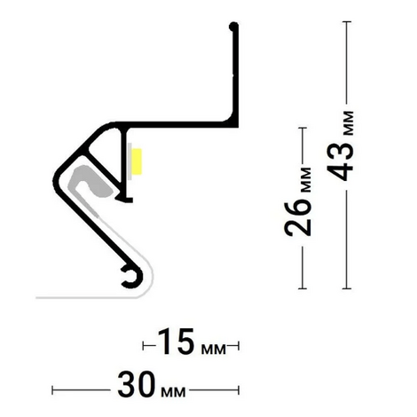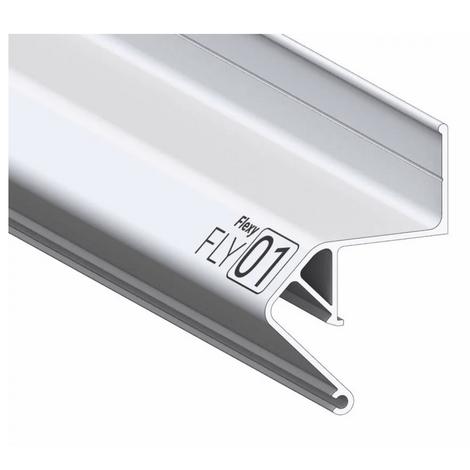 Неокрашенный стеновой парящий профиль Flexy FLY 01 для натяжных потолков с гарпунной системой крепления полотна. С полкой для светодиодной ленты. Без светорассеивающей вставки.