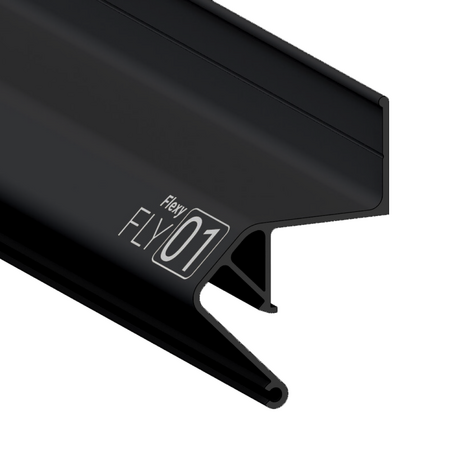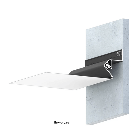 Черный стеновой парящий профиль Flexy FLY 01 для натяжных потолков с гарпунной системой крепления полотна. С полкой для светодиодной ленты. Без светорассеивающей вставки.