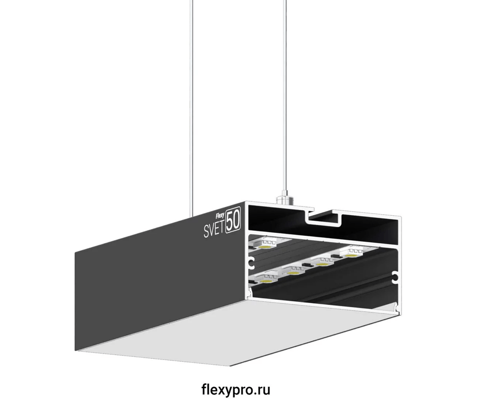 Универсальный профиль Flexy SVET 50 для изготовления накладных, подвесных и встраиваемых световых линий и светильников. Не оснащен источником света!