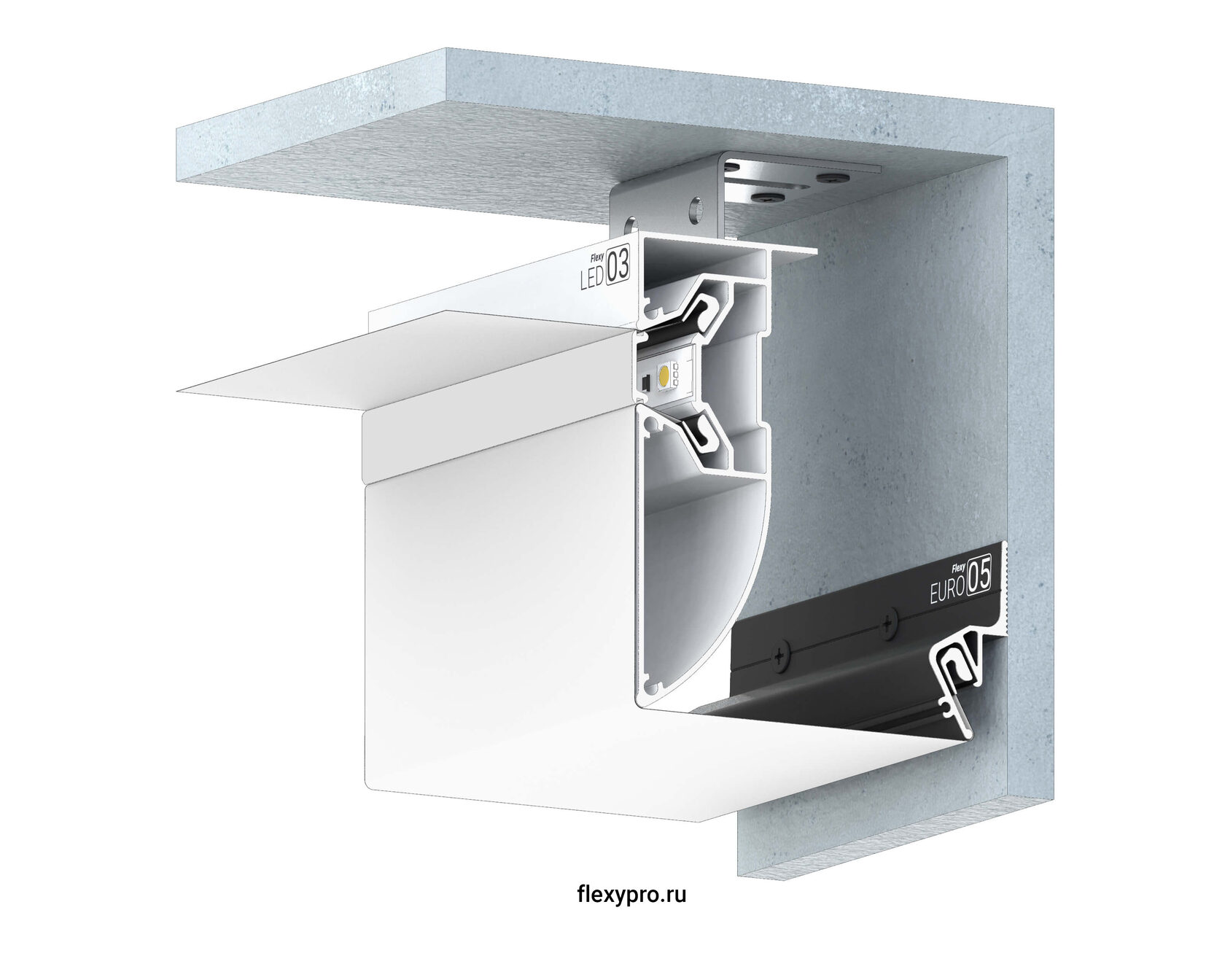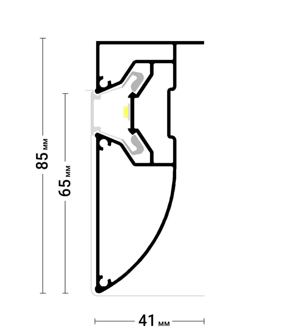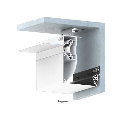 НАПИЛЕННЫЙ профиль Flexy LED 03 для криволинейных многоуровневых натяжных потолков с гарпунной системой крепления полотна. С полкой для светодиодной ленты и светорассеивающей вставкой.