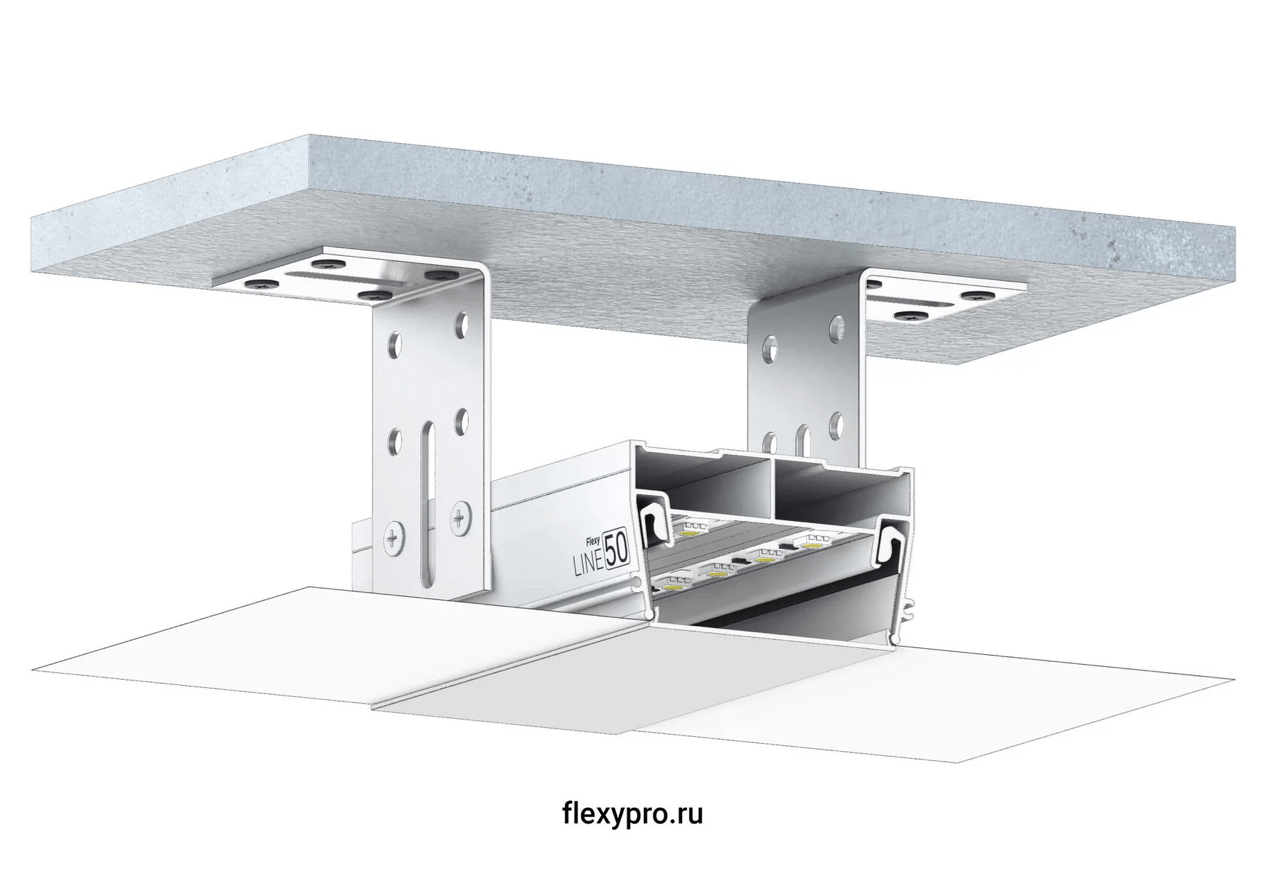 Разделительный профиль Flexy LINE 50 для натяжных потолков с гарпунной системой крепления полотна. Для изготовления световых линий.