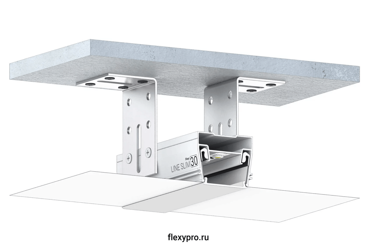 Разделительный профиль Flexy LINE SLIM 30 для натяжных потолков с гарпунной системой крепления полотна. Для изготовления световых линий.
