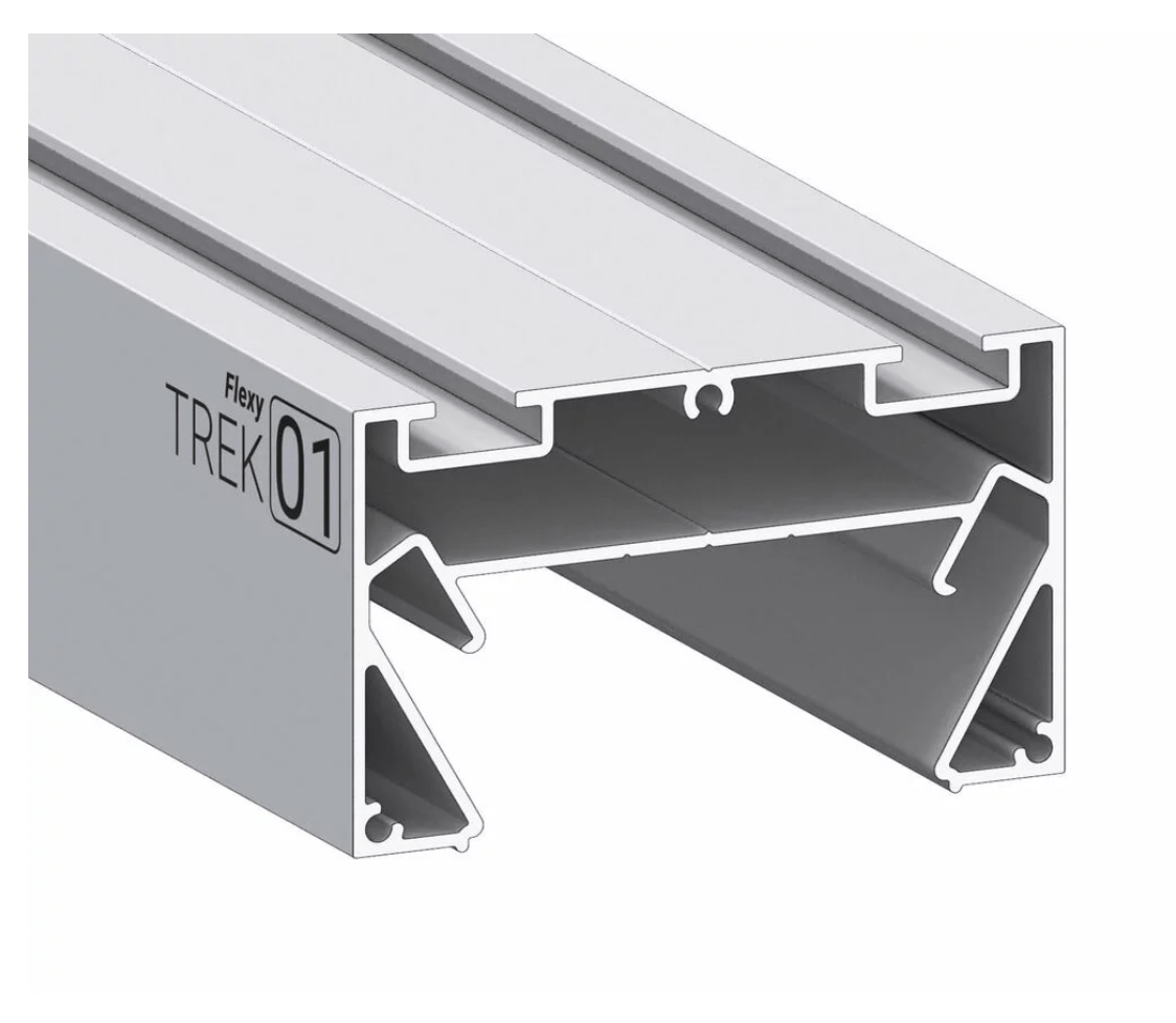 Разделительный профиль Flexy TREK 01 для натяжных потолков с гарпунной системой крепления полотна. Для установки однофазной трековой шины. Для изготовления встраиваемых и накладных световых линий, подвесных и накладных светильников, щелевых вытяжек.