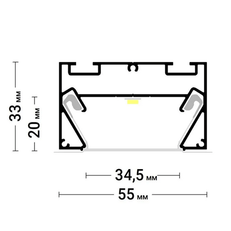 Профиль алюминиевый ПФ 8049 Трек-световая линия 34 мм (TREK 01), 2м (10м/уп)