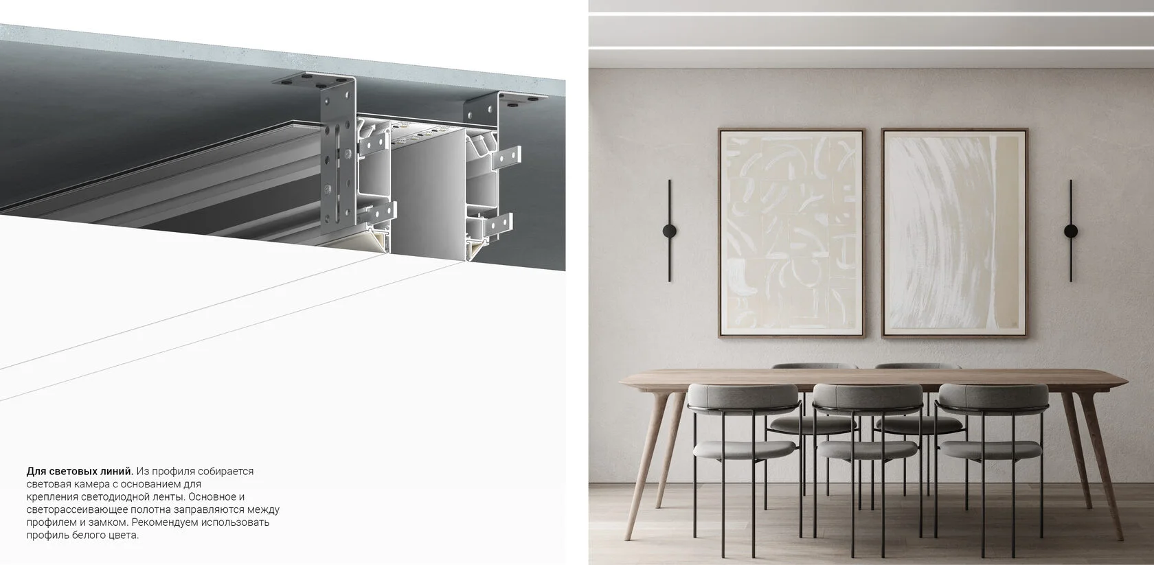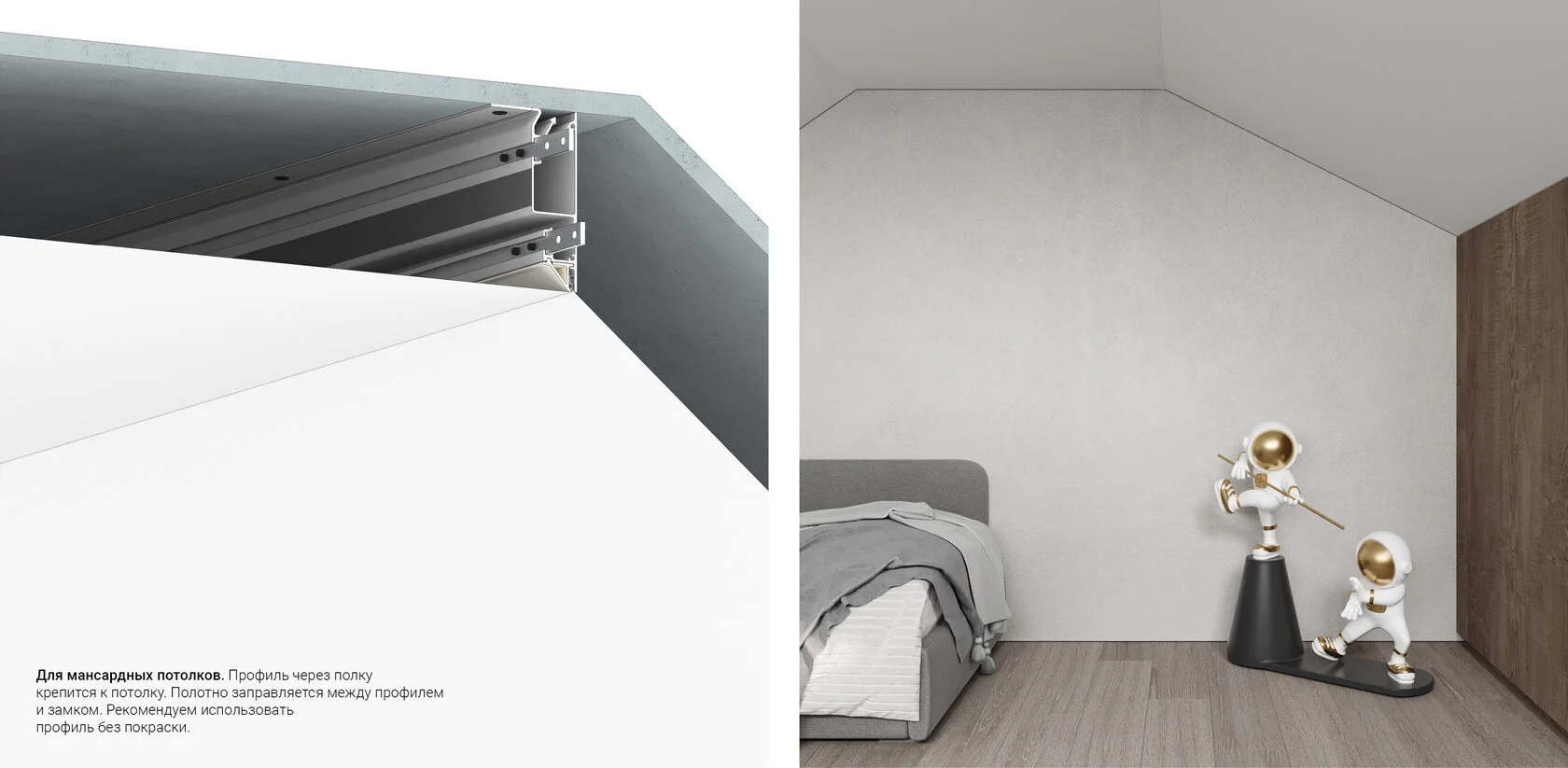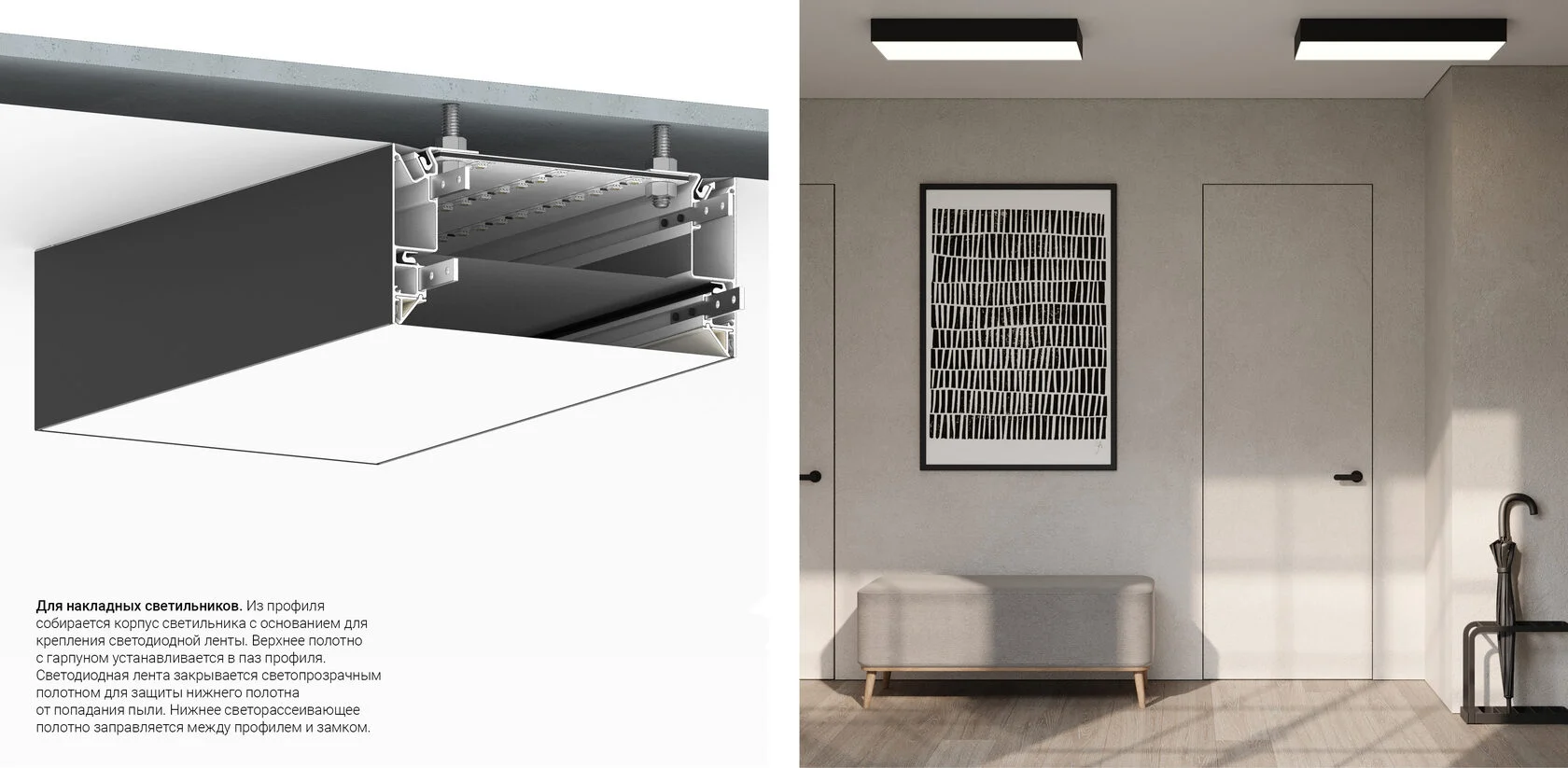 Профиль Flexy IZI UNI 01 для изготовления потолочных ниш и светильников. Профиль окрашен в белый муар.