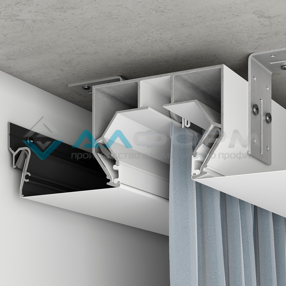 Длина профиля - 3,2м, 1 ряд для крепления штор.