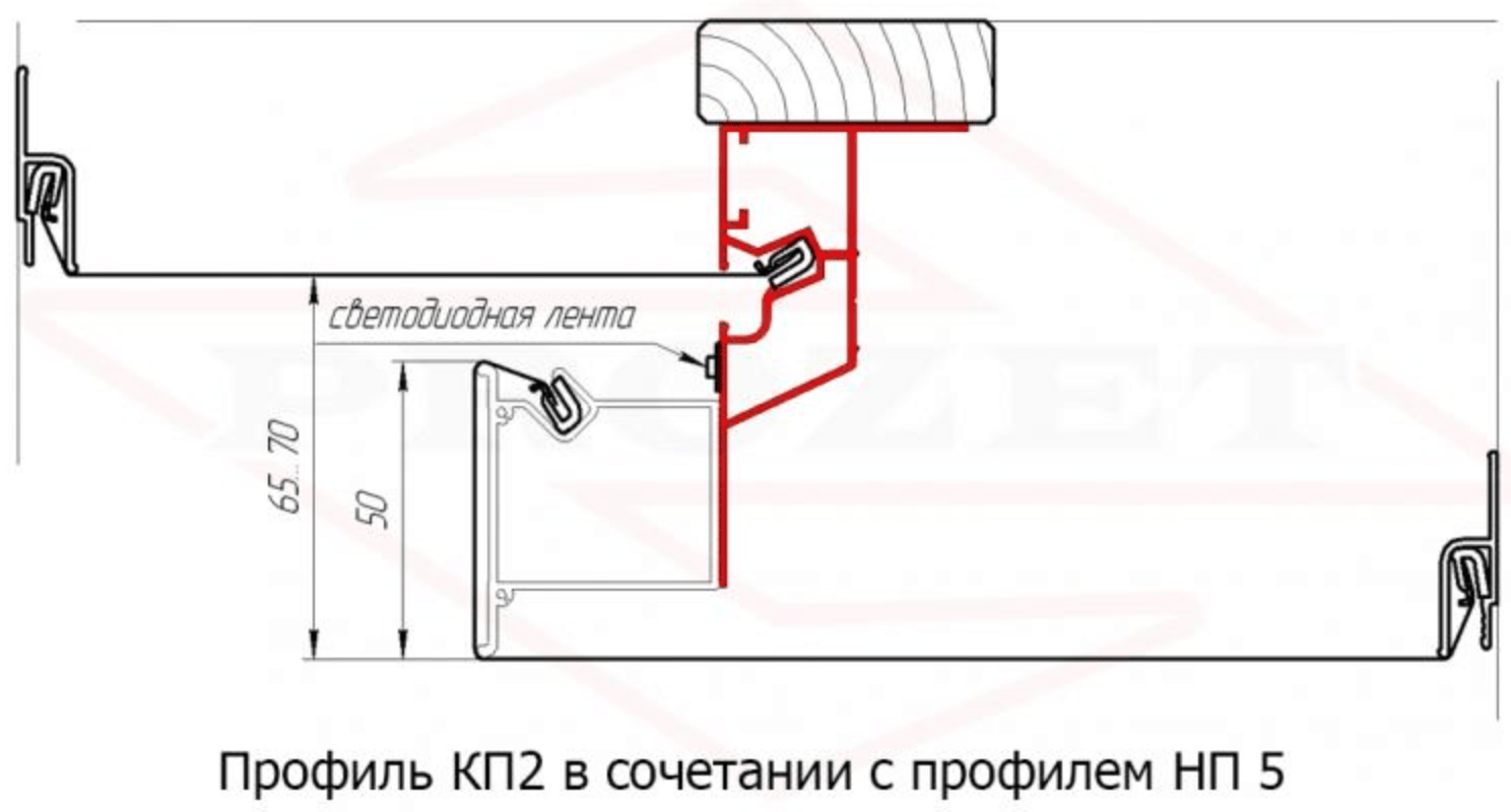 Профиль алюминиевый Prozet КП2 - каркасный профиль, который служит основой для монтажа двухуровневых потолков с подсветкой, обеспечивающий монтажную поверхность высотой 90 мм, что позволяет создавать многоуровневые конструкции.