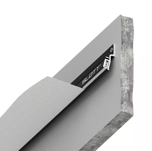 Демпферная система теневого профиля Еврослотт это технологичное решение для сочетания плоскости потолка со стеной, при котором оставляется правильный, ровный теневой зазор. Возможность использования с тканевыми натяжными потолками и пленкой ПВХ.