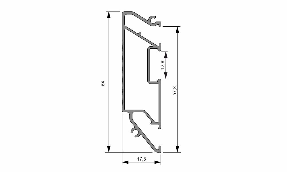 Конструкционный профиль Sigma Neo Plus для изготовления на натяжном потолке прямоугольных (без перегиба) и криволинейных ниш под установку скрытых карнизов для штор. Также возможно изготовление двухуровневого натяжного потолка с прямыми внутренними и наружными углами.