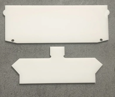 Торцевой элемент (заглушка) состоит из 1-го внешнего элементов и 1-го внутреннего. У внешней части есть паз для гарпуна, поэтому в дальнейшем монтаже исключает вклейку полотна. Внутренняя часть полотна приклеивается с внутренней стороны карниза.