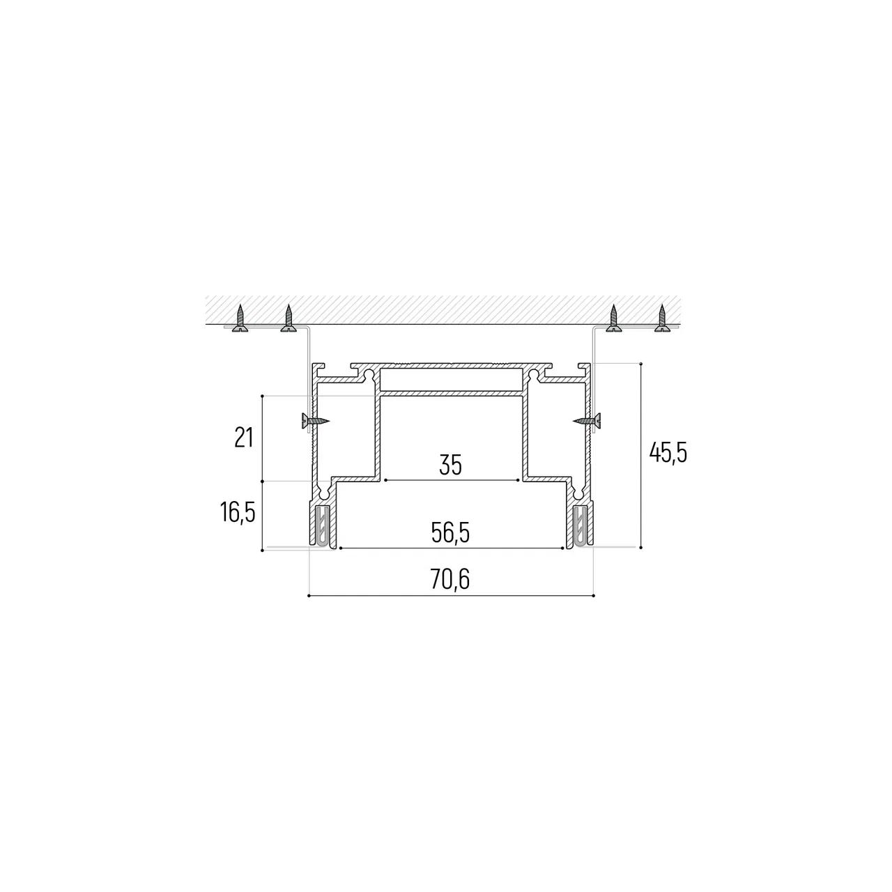 Компонент системы для встраивания однофазного трека Slott Intruder со скрытым фиксатором светильника.