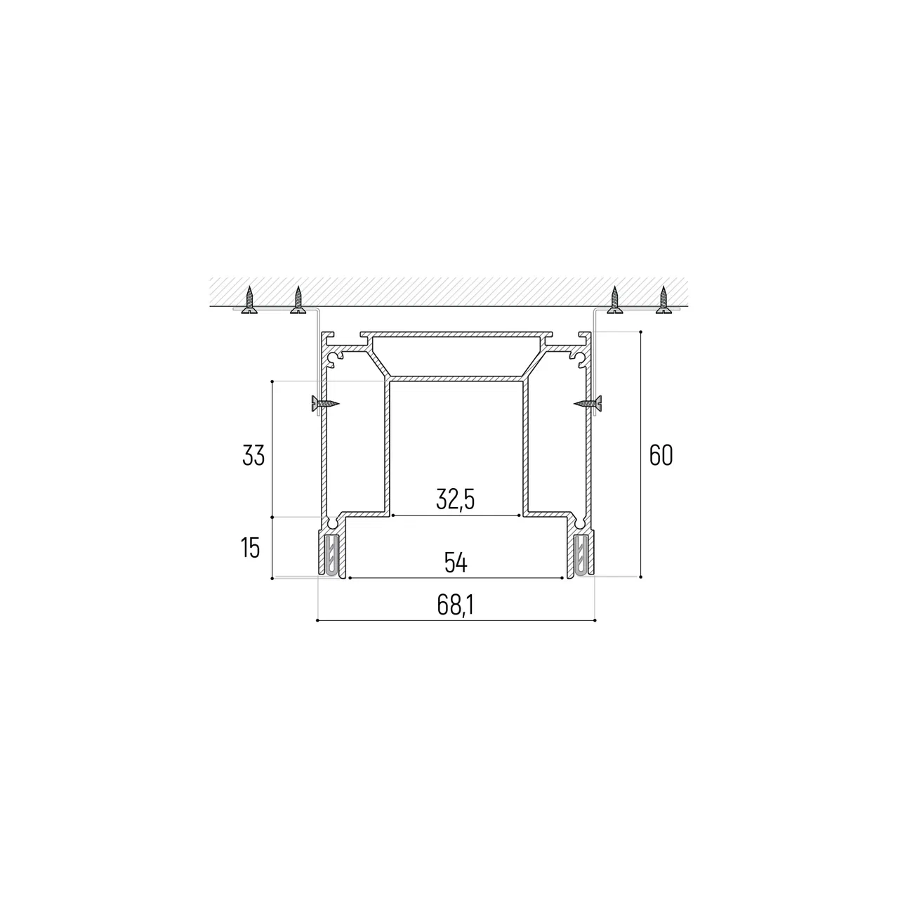 Компонент системы для встраивания трёхфазного трека Slott Intruder со скрытым фиксатором светильника.