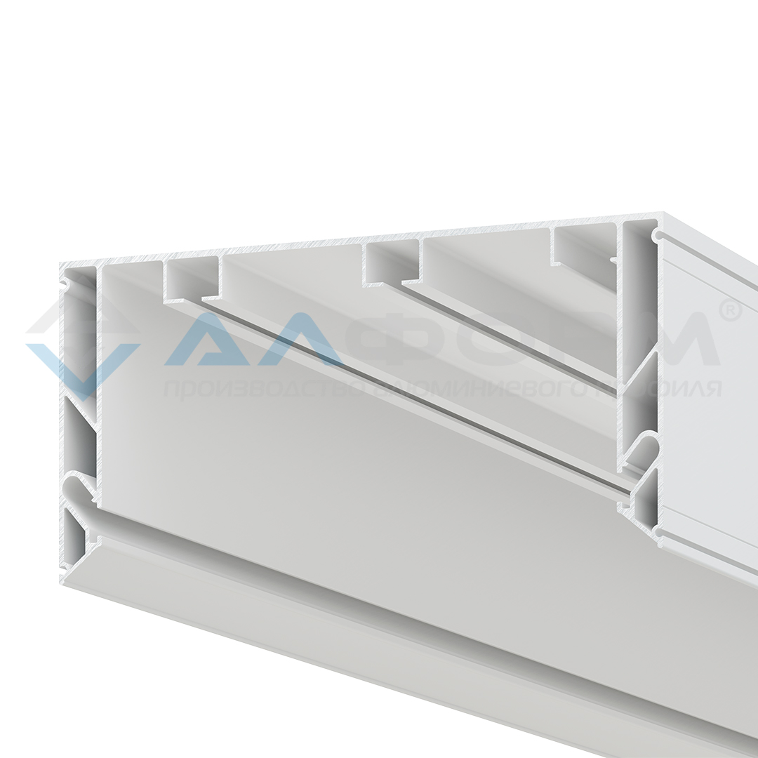 Алюминиевый профиль для монтажа натяжного потолка из ПВХ пленки на гарпунной системе крепления.Предназначен изготовления скрытой ниши карниза штор, представляет собой цельнометаллический профиль с двумя рядами для крепления крючков и местом для установки подсветки.Имеет необходимые расстояния для беспрепятственного движения штор между собой. Расстояние до первого ряда штор 60мм, расстояние до второго ряда 55мм, глубина дорожек 70мм.