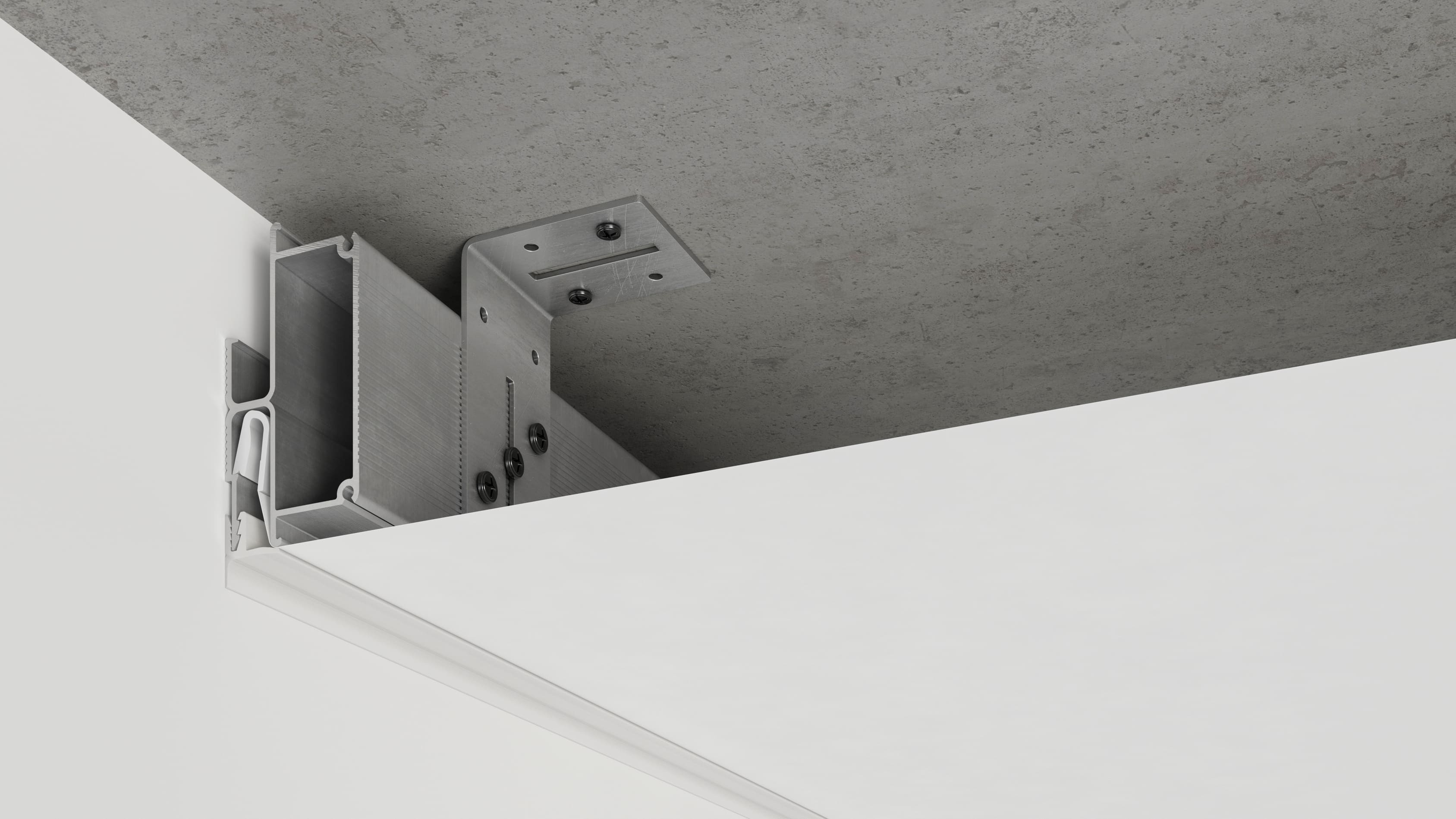 Double Box неокрашенный используется для монтажа натяжных потолков к стенам, которые трудно или невозможно просверлить, таких как керамогранит, природный камень, стекло и т.д.