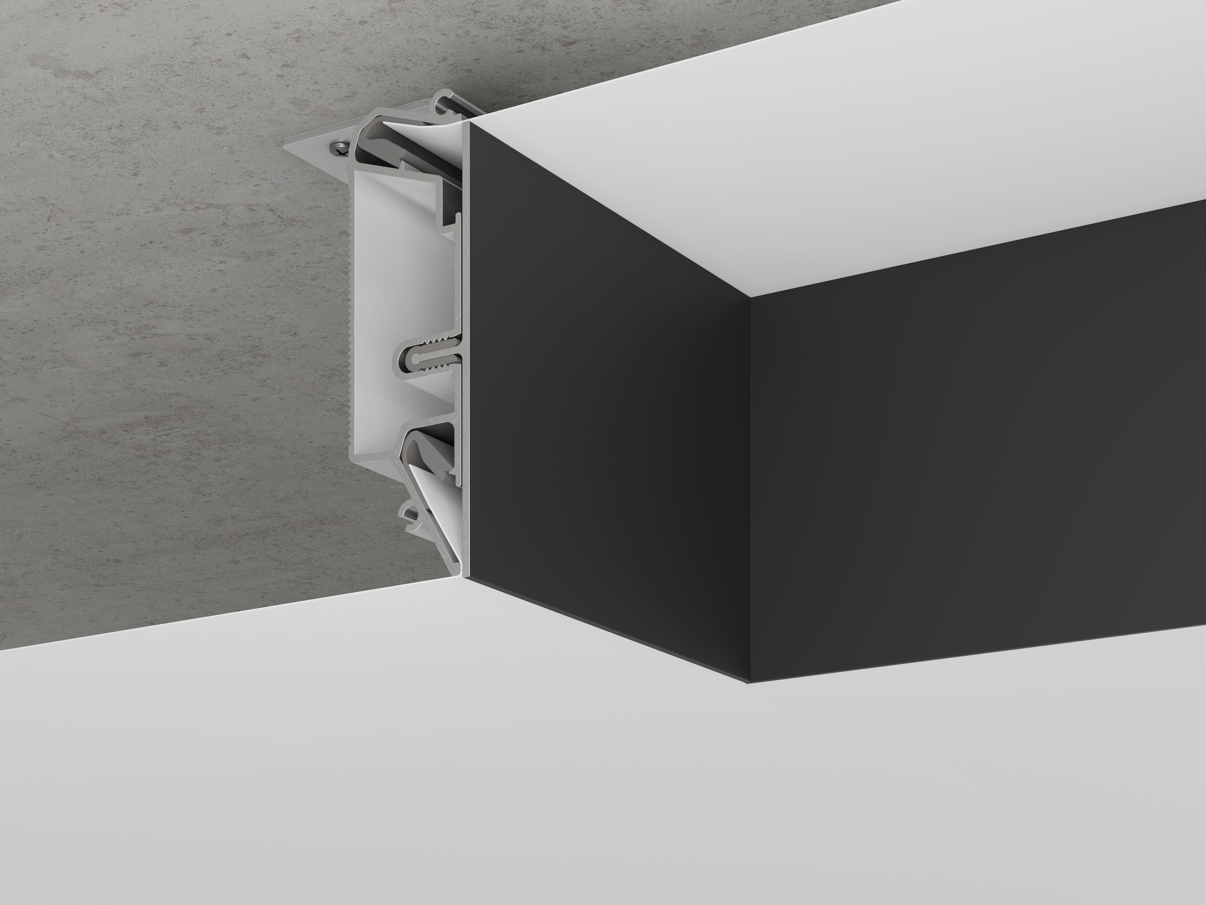 Sigma NEO — алюминиевый профиль с алюминиевым бампером для создания ниши или перехода уровня потолка. Алюминиевый бампер высотой 62 мм доступен в черном и белом цвете.