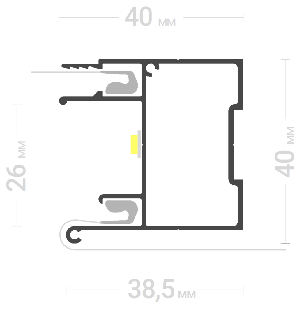 - Возможность установки LED ленты шириной до 20 мм внутри ниши.