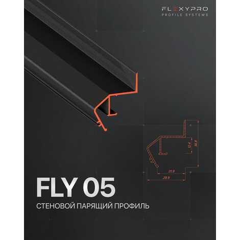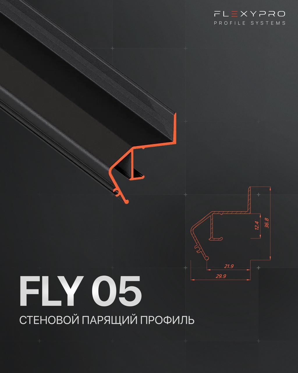 Профиль алюминиевый ПФ 3672 Стеновой парящий ЧЕРНЫЙ (FLY 05), 2м (12м/уп)