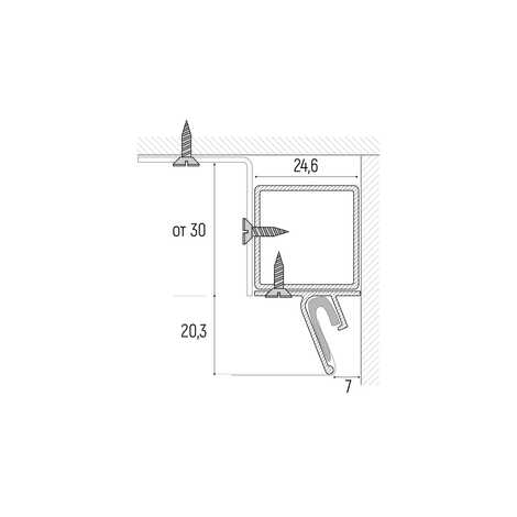 Это дизайнерское решение, которое помогает объединить плоскости стен и натяжного потолка. Благодаря такому методу на стене остаётся правильный, ровный теневой зазор, создаётся ощущение, словно потолок парит в воздухе, совершенно не касаясь стен. Существует несколько модификаций — стеновой, потолочный и усиленная версия для больших площадей (strong)