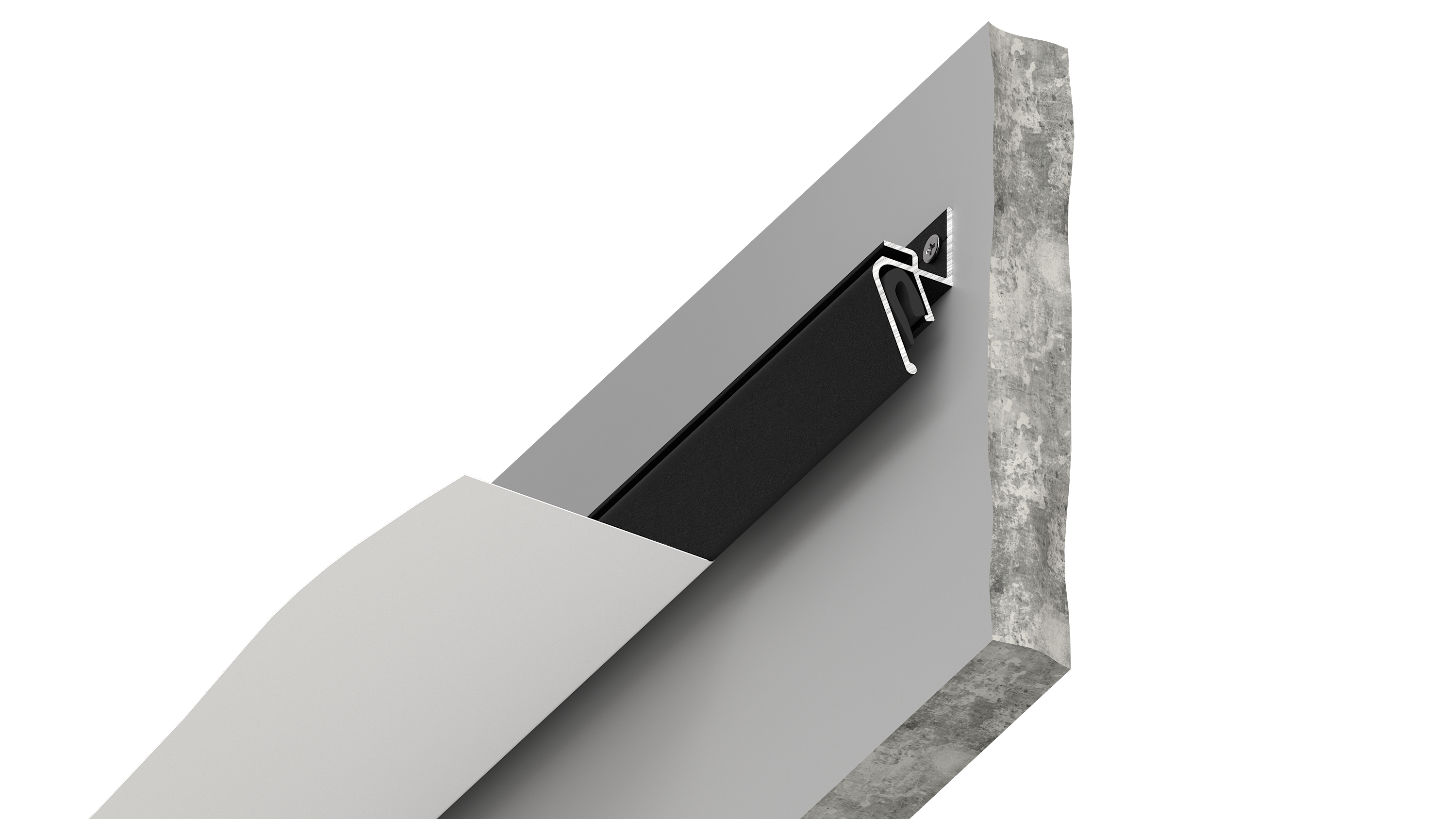 Это дизайнерское решение, которое помогает объединить плоскости стен и натяжного потолка. Благодаря такому методу на стене остаётся правильный, ровный теневой зазор, создаётся ощущение, словно потолок парит в воздухе, совершенно не касаясь стен. Существует несколько модификаций — стеновой, потолочный и усиленная версия для больших площадей (strong).