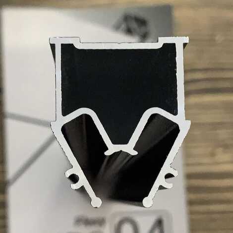 Разделительный профиль Flexy EURO 04 с теневым зазором для натяжных потолков с гарпунной системой крепления полотна. Используется для наклонных натяжных потолков на мансардах, либо для разделения поверхности полотна на несколько сегментов без использования разделительной вставки.