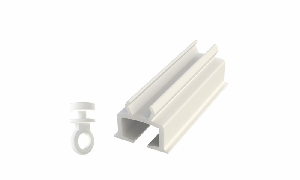 Карнизная вставка из ПВХ в сочетании с алюминиевым профилем Gamma-20 идеальное недорогое решение для установки в натяжном потолке штор в ванных комнатах и в помещениях без карнизных ниш.
