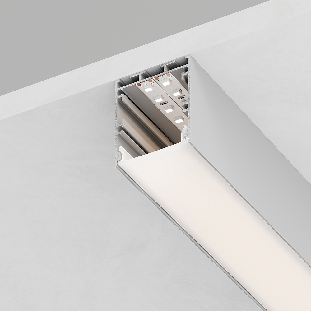 Профиль алюминиевый Линии света накладной, серебро, CAB256 с матовым экраном, 2 заглушками, 4 креп