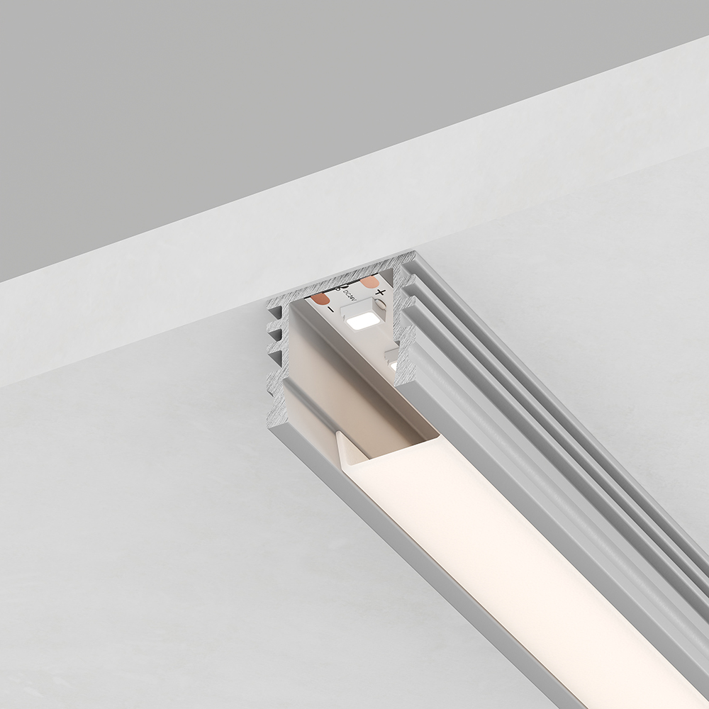 Профиль алюминиевый накладной , серебро, CAB261 с матовым экраном, 2 заглушками, 4 крепежами в ком