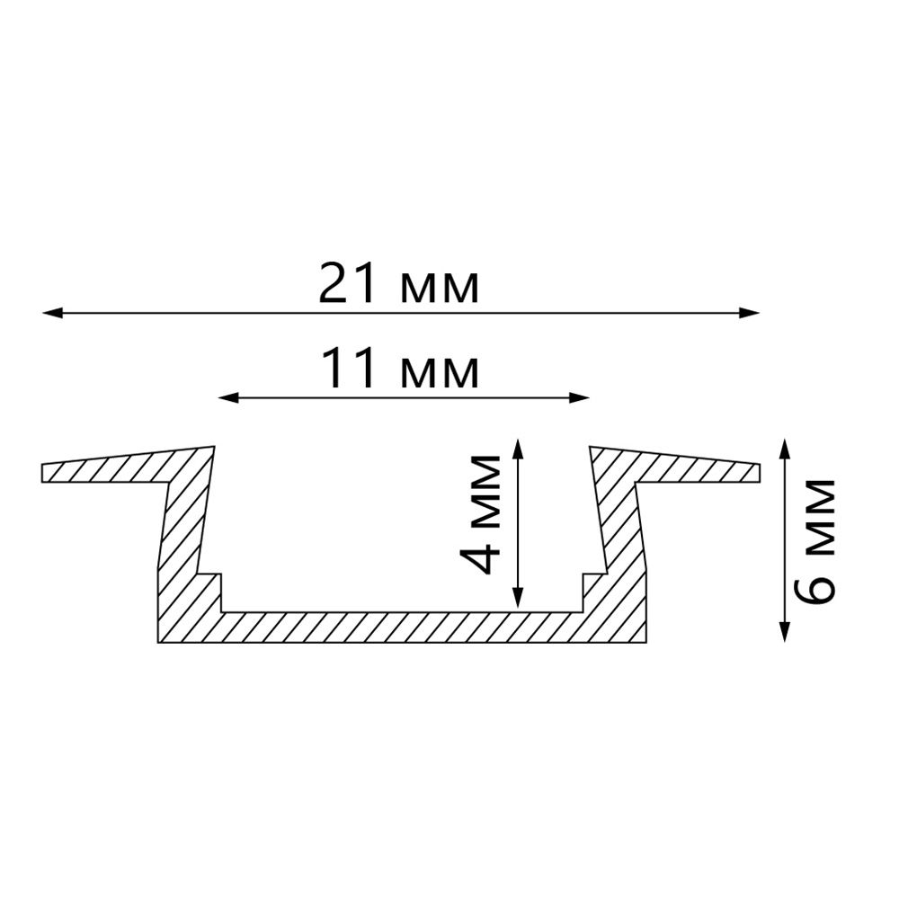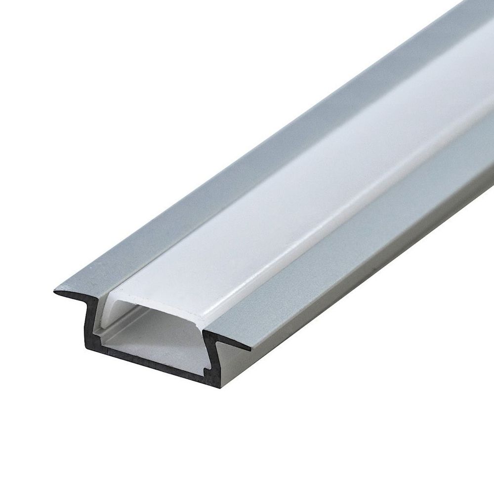 Профиль алюминиевый встраиваемый без крепежей, серебро, CAB251 с матовым экраном, 2 заглушками в к