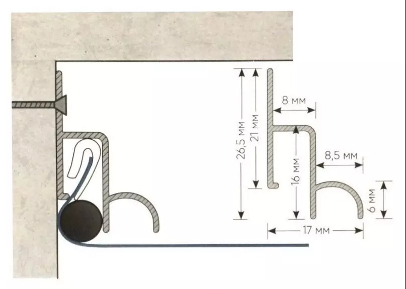 За счет идеального примыкания полотна к стене, Kraab 3.0 позволяет установить натяжной потолок визуально не отличимым от потолка из гипрока.