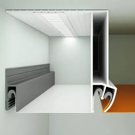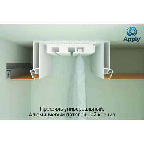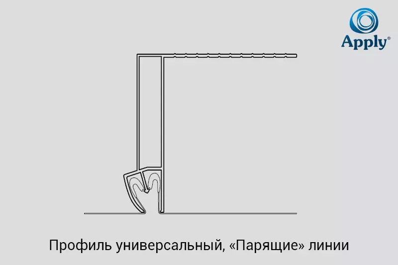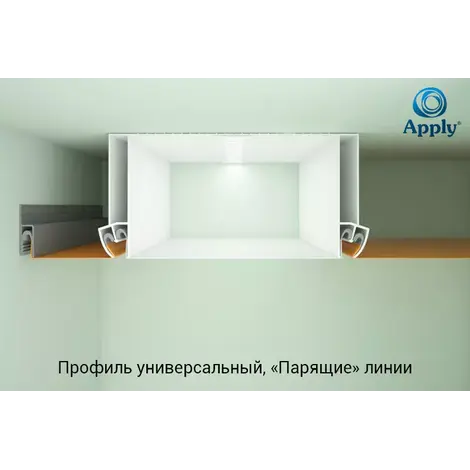 Профиль APPLY Стандарт — это конструктивный профиль для натяжных потолков, используемый для создания многоуровневых и резных конструкций, где требуется расстояние между уровнями более 4 см. Он позволяет устанавливать резные полотна на некотором расстоянии от основного или другого полотна, придавая потолку объем и возможность использовать скрытую подсветку между уровнями.
