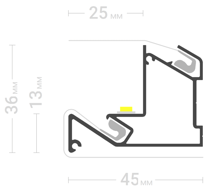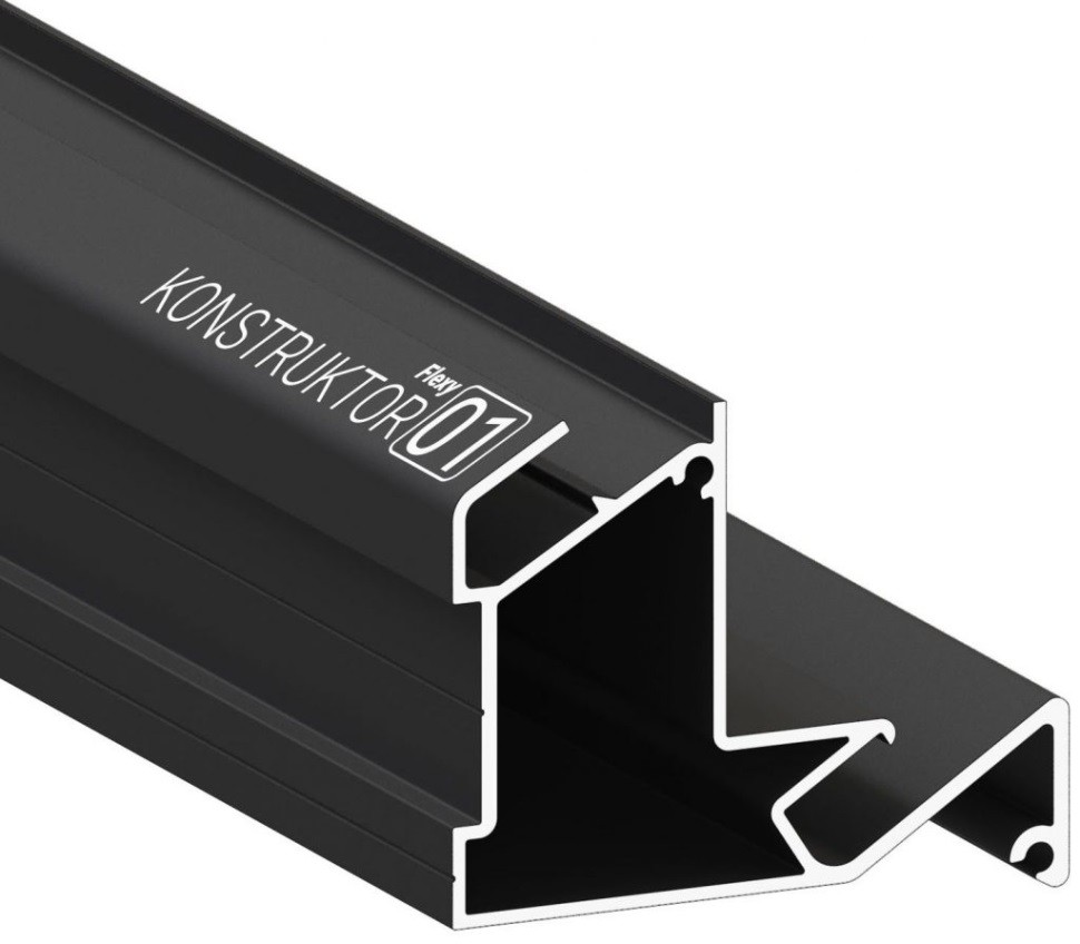 Черный профиль-конструктор имеет гарпунную систему крепления. Используется для изготовления ниш с последующим монтажом спотов. Изготовлен из высококачественного алюминия, имеет 2 уровня. Имеет светорассеивающую нишу под спот-светильник.