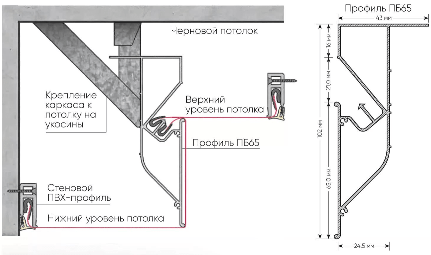 Применение бесщелевого профиля позволяет реализовать проекты, в которых сочетаются разные полотна и при этом нет