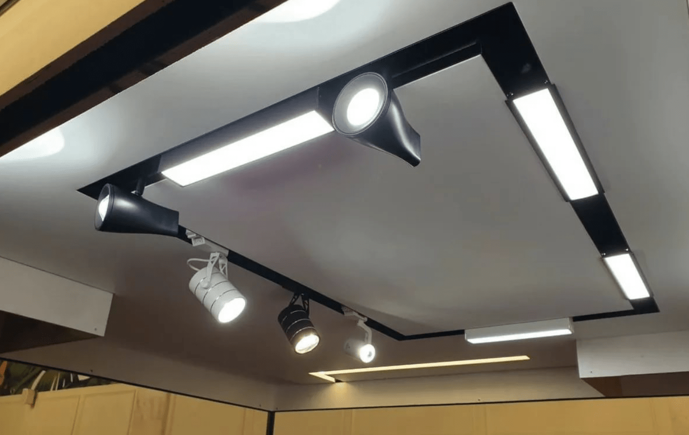 Система допустима к монтажу как в открытом виде, так и с рассеивателем в виде полупрозрачного полотна. Выпускается в трёх цветовых решениях: чёрно-белый и белый вариант под продольную засветку, а также чёрный вариант для установки дополнительных светильников.