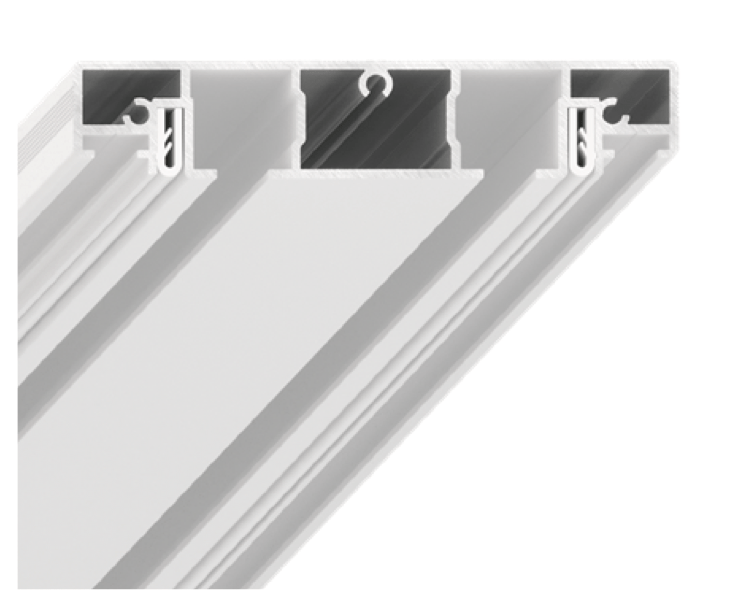 Двухрядный встроенный карниз SLIM Road 02 с высотой профиля всего 17,5 мм. Это позволяет максимально сохранить высоту финишного потолка. Система имеет минималистичный вид и не требует дополнительного монтажа ниши.