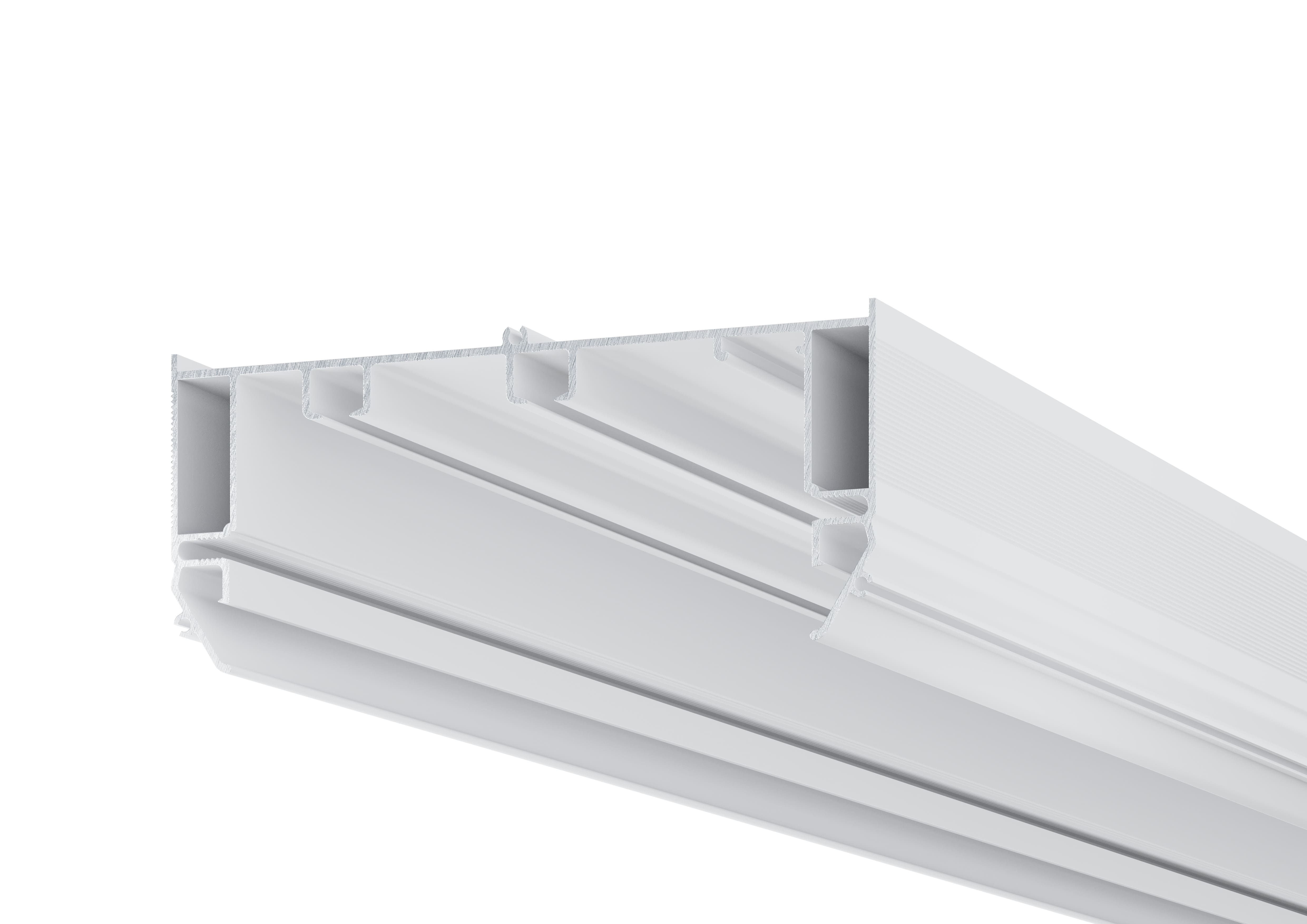 Карниз Gardina P50 - скрытый «П-образный» карниз с алюминиевым бампером, подсветкой и креплением натяжного потолка в одной плоскости. Его возможно установить от стены до стены, либо с отступом на нужном расстоянии, используя торцевые заглушки.