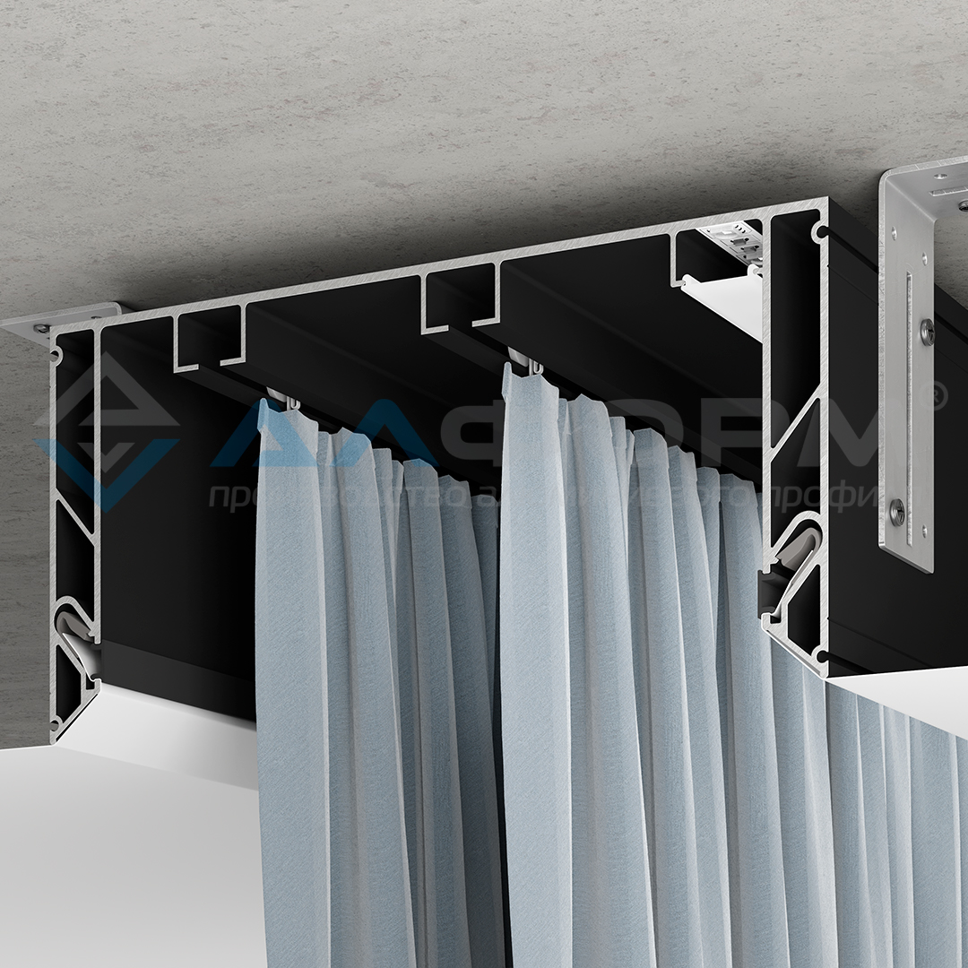 •Расстояние 60 мм до первого ряда штор и 55 мм до второго