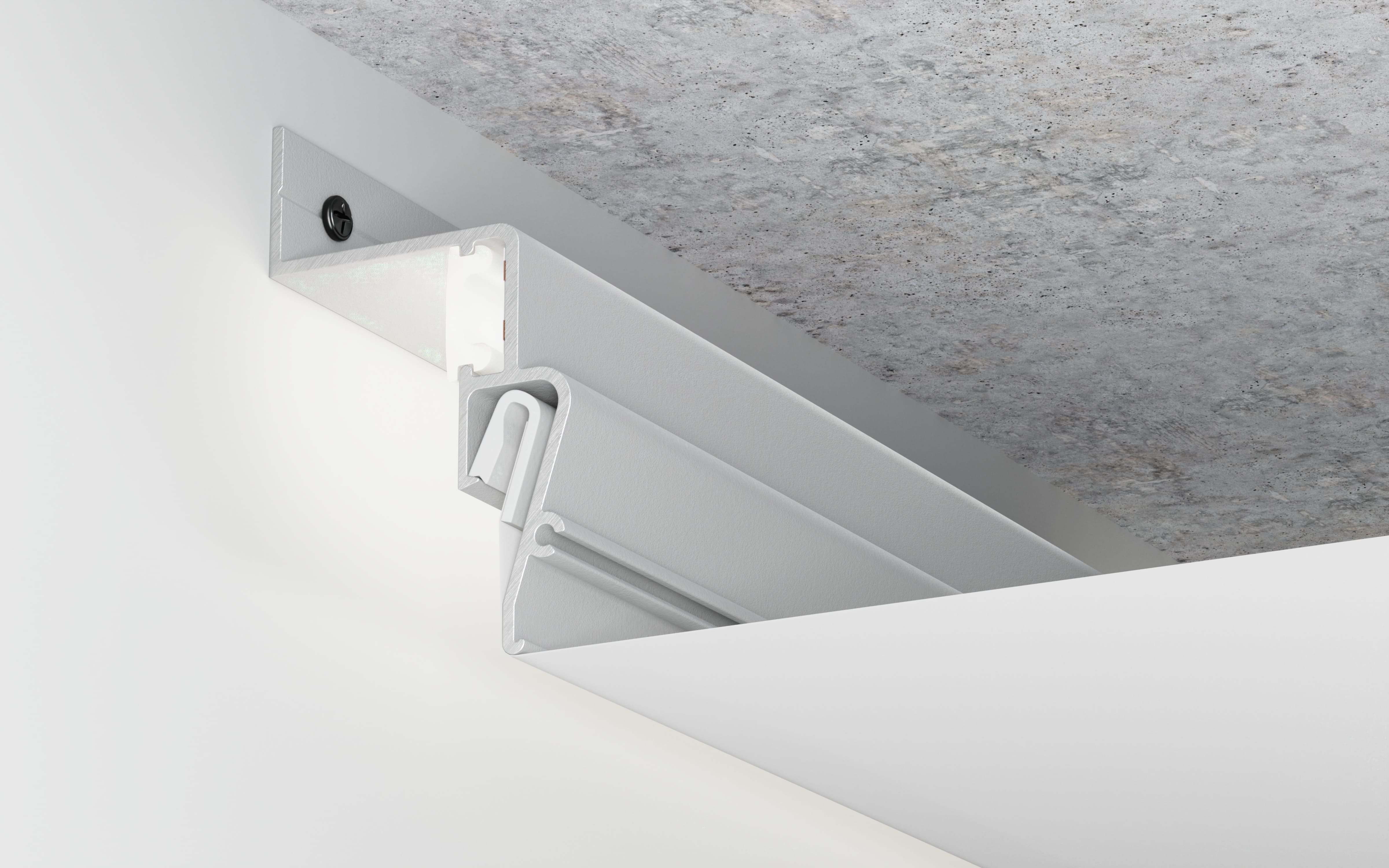 Стеновой профиль Contour-Pro для парящей подсветки вдоль стен c использованием светодиодной ленты и светорассеивающей вставки.